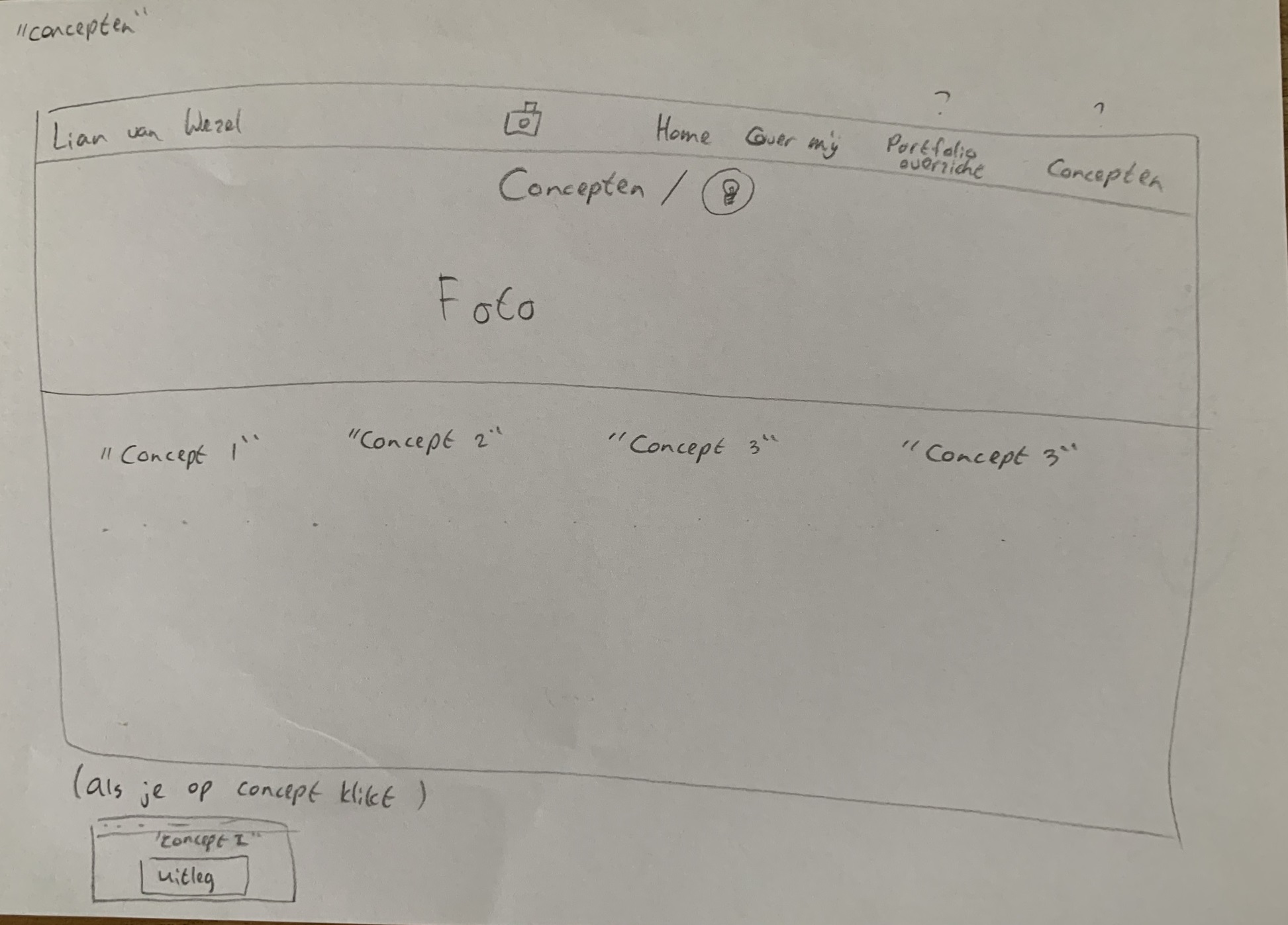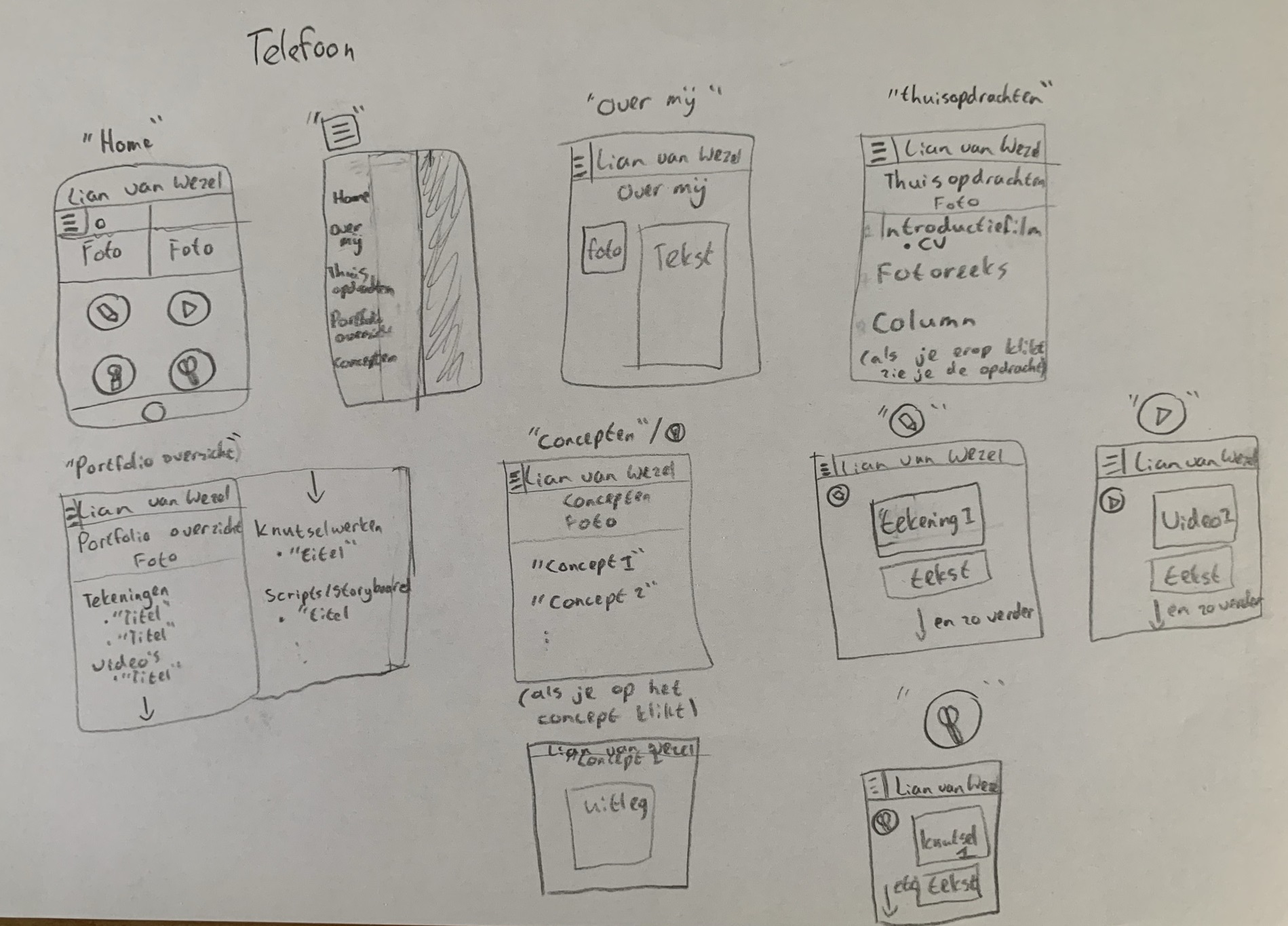 Voor mijn portfolio wilde ik graag een website maken waar ik het overzichtelijk kan laten zien. Om goed vorm te geven hoe ik mijn website eruit wilde laten zien heb ik elke pagina globaal ontworpen zodat ik aan de slag kon met de website.