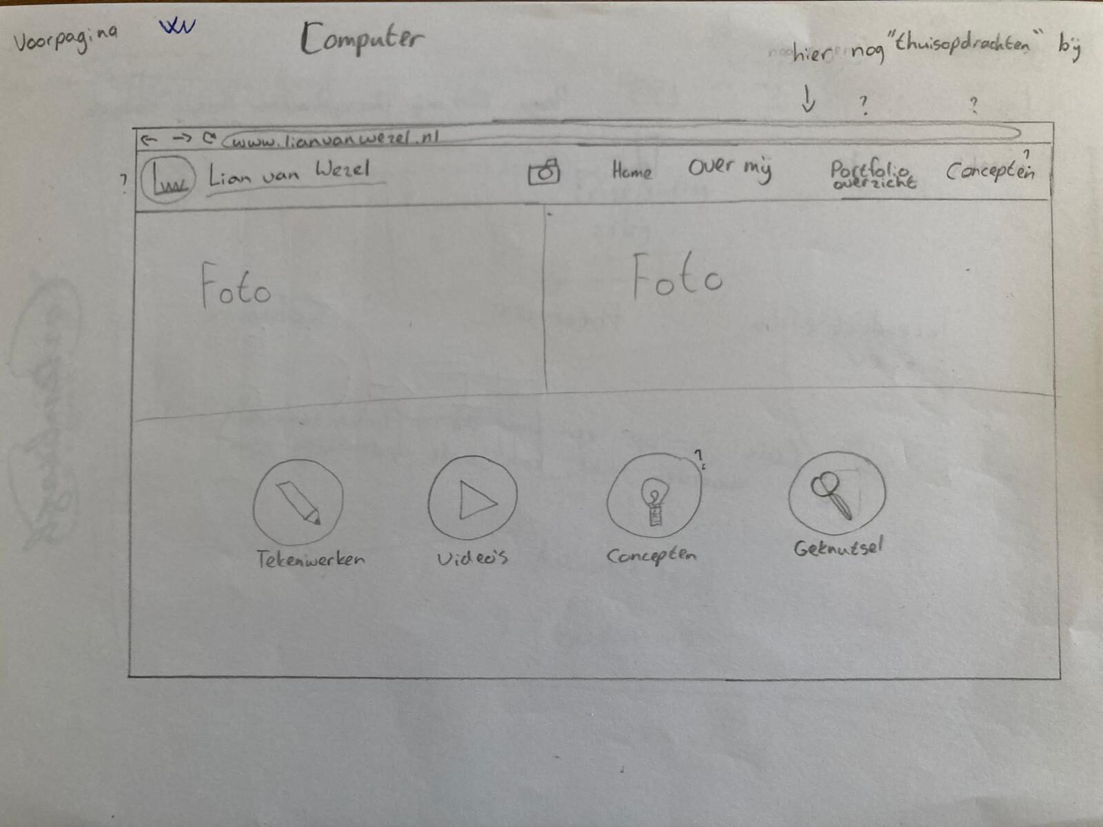 Uiteindelijk heb ik ervoor gekozen om geen “Portfolio overzicht” en “Knutselwerken” pagina te maken. Deze site is namelijk al een portfolio overzicht en ik heb uiteindelijk geen knutselwerken meer kunnen vinden om die te plaatsen op de site. Deze pagina heb ik vervangen voor “Fotografie”, want ik heb wel foto’s gemaakt in de afgelopen jaren.